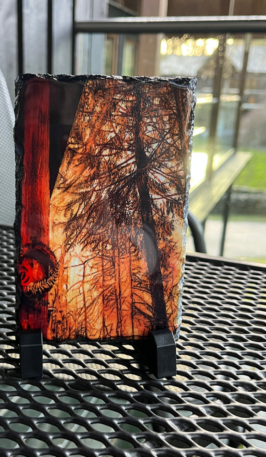 Betty is a Global Arts in Medicine Fellow, artist, palliative care nurse, and mother. After studying Fine Art & Health, she worked at the 50th Venice Biennale before becoming a nurse in 2010. Her elemental and ethereal artwork aims to spark conversation and encourage non-gallery-goers to engage with art. Betty is also a member of the All-Party Parliamentary Group on Arts, Health & Wellbeing, advocating for the positive impact of art on health. We have worked with her to create slates with her art on them. These slates have been carefully printed by our optimise team.